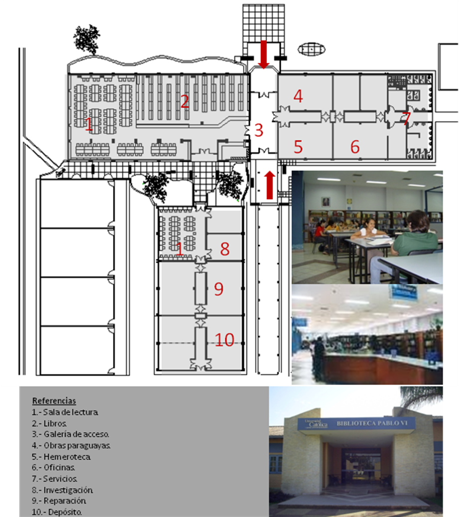 Sala de lectura: El usuario accede a los materiales de la biblioteca y los consulta en la sala de lectura, individuales o en grupos de estudio en salas preparadas para el efecto.
